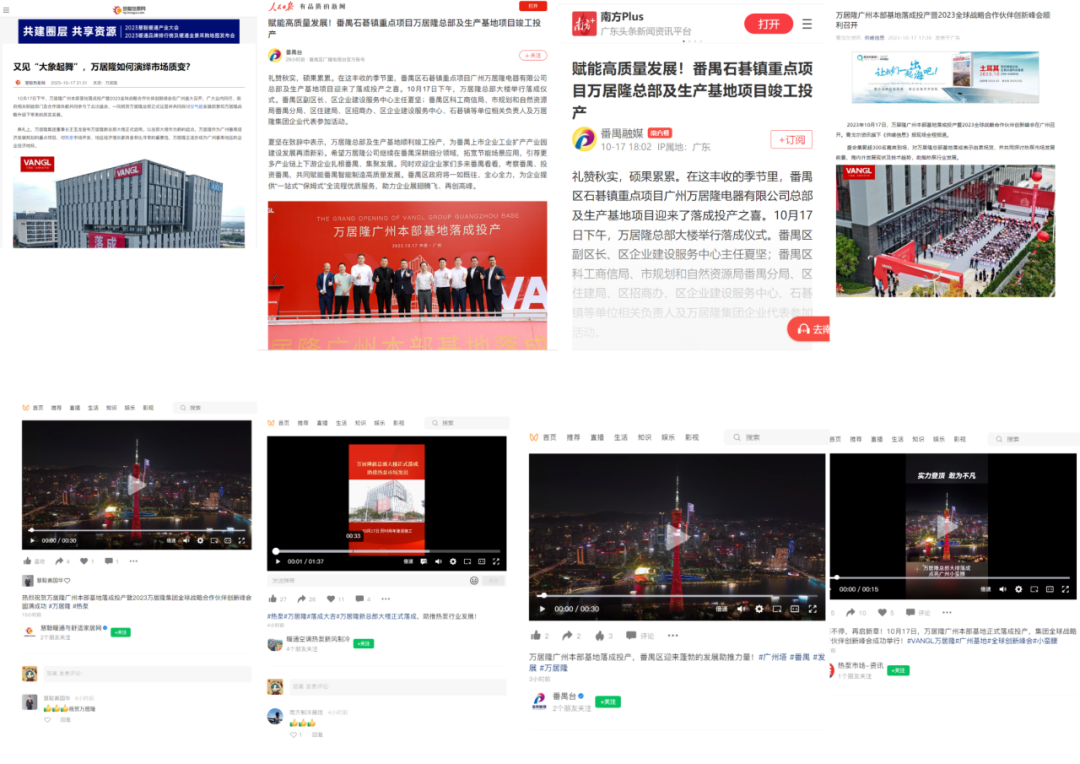 同时,针对万居隆新总部基地落成这一大事件,也吸引了众多权威媒体争相报道,包括慧聪热泵网、产业在线、热泵市场、澎湃新闻、环球新闻等行业权威媒体及番禺电视台、番禺融媒体等地方政府媒体,都对万居隆总部基地落成投产表示了热烈的祝贺和大范围的宣传。